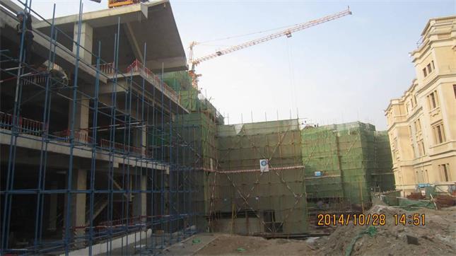 自2012年6月C1、C2地塊開始進行土方施工,截至2014年10月31日,歷時29個月的C2地塊實現(xiàn)主體結(jié)構(gòu)全部封頂。