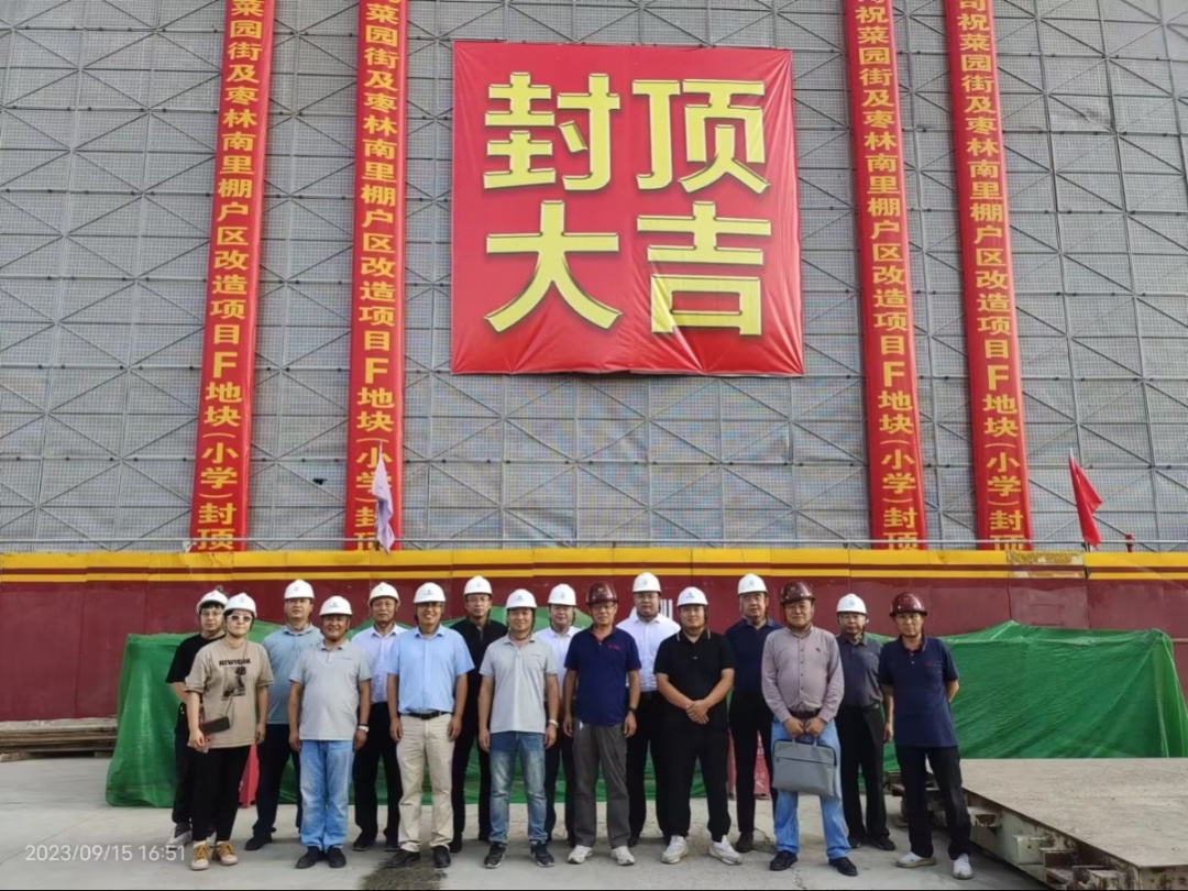 2023年7月13日,經(jīng)廣安集團(tuán)黨委批準(zhǔn),菜園街項(xiàng)目成立了“菜園街棚改項(xiàng)目臨時(shí)黨支部”,臨時(shí)黨支部成立了“青年突擊隊(duì)”,圍繞菜園街項(xiàng)目中心工作充分發(fā)揮戰(zhàn)斗堡壘和先鋒模范作用,為推動(dòng)項(xiàng)目建設(shè)提速增效凝聚起了強(qiáng)大合力。同時(shí),為積極落實(shí)西城區(qū)學(xué)位保障專(zhuān)班工作要求,在西城區(qū)各委辦局的指導(dǎo)下,廣安融盛公司成立了F地塊專(zhuān)項(xiàng)協(xié)調(diào)小組,廣安融盛公司總經(jīng)理?yè)?dān)任組長(zhǎng),施工單位、監(jiān)理單位領(lǐng)導(dǎo)現(xiàn)場(chǎng)辦公,協(xié)調(diào)解決現(xiàn)場(chǎng)疑難問(wèn)題,為項(xiàng)目快速推進(jìn)提供了重大保障。結(jié)構(gòu)封頂這一階段性成果,離不開(kāi)各參建單位的辛勤付出、精誠(chéng)配合以及各級(jí)領(lǐng)導(dǎo)的大力支持與幫助。至此,第一階段施工任務(wù)圓滿完成,為下一階段施工打下了良好的基礎(chǔ),也為項(xiàng)目按時(shí)竣工提供了有力保障。