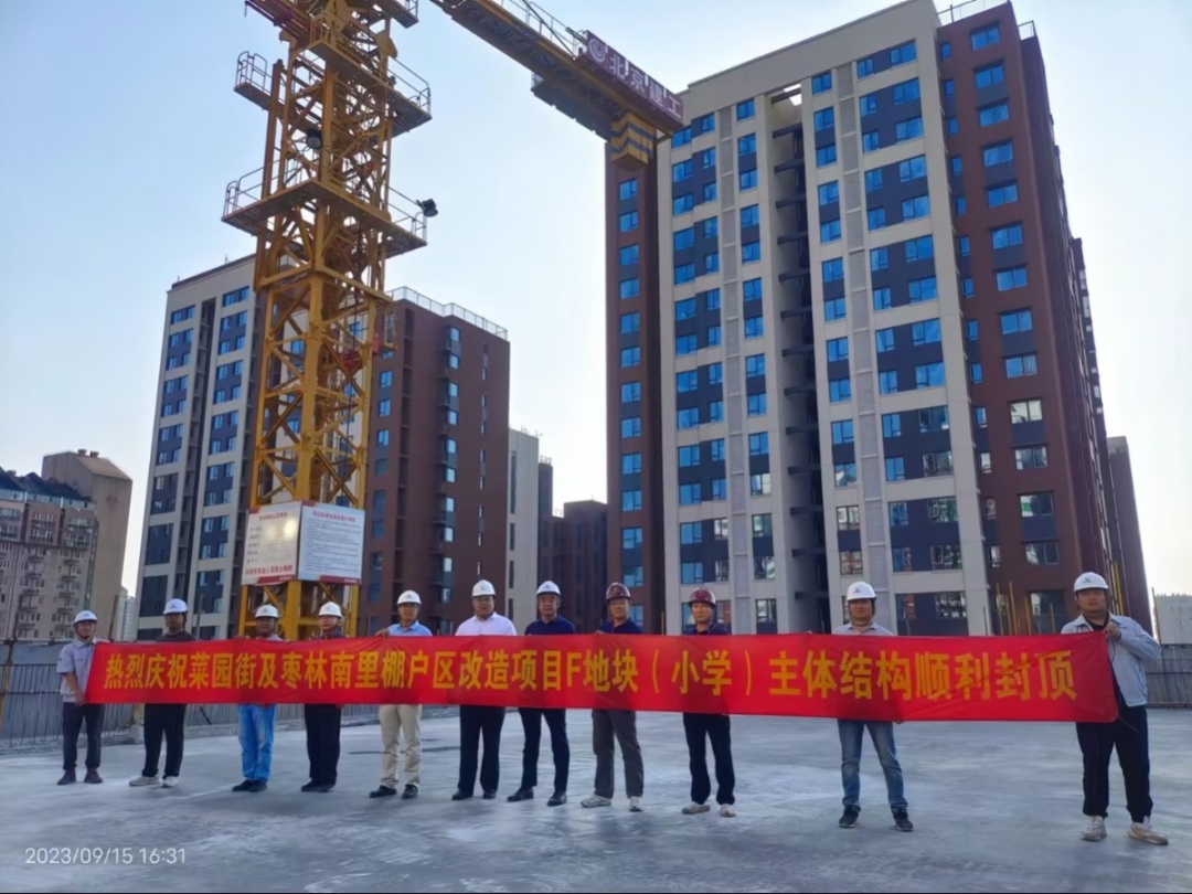 菜園街及棗林南里棚戶區(qū)改造項(xiàng)目F地塊(小學(xué))封頂喜報(bào)